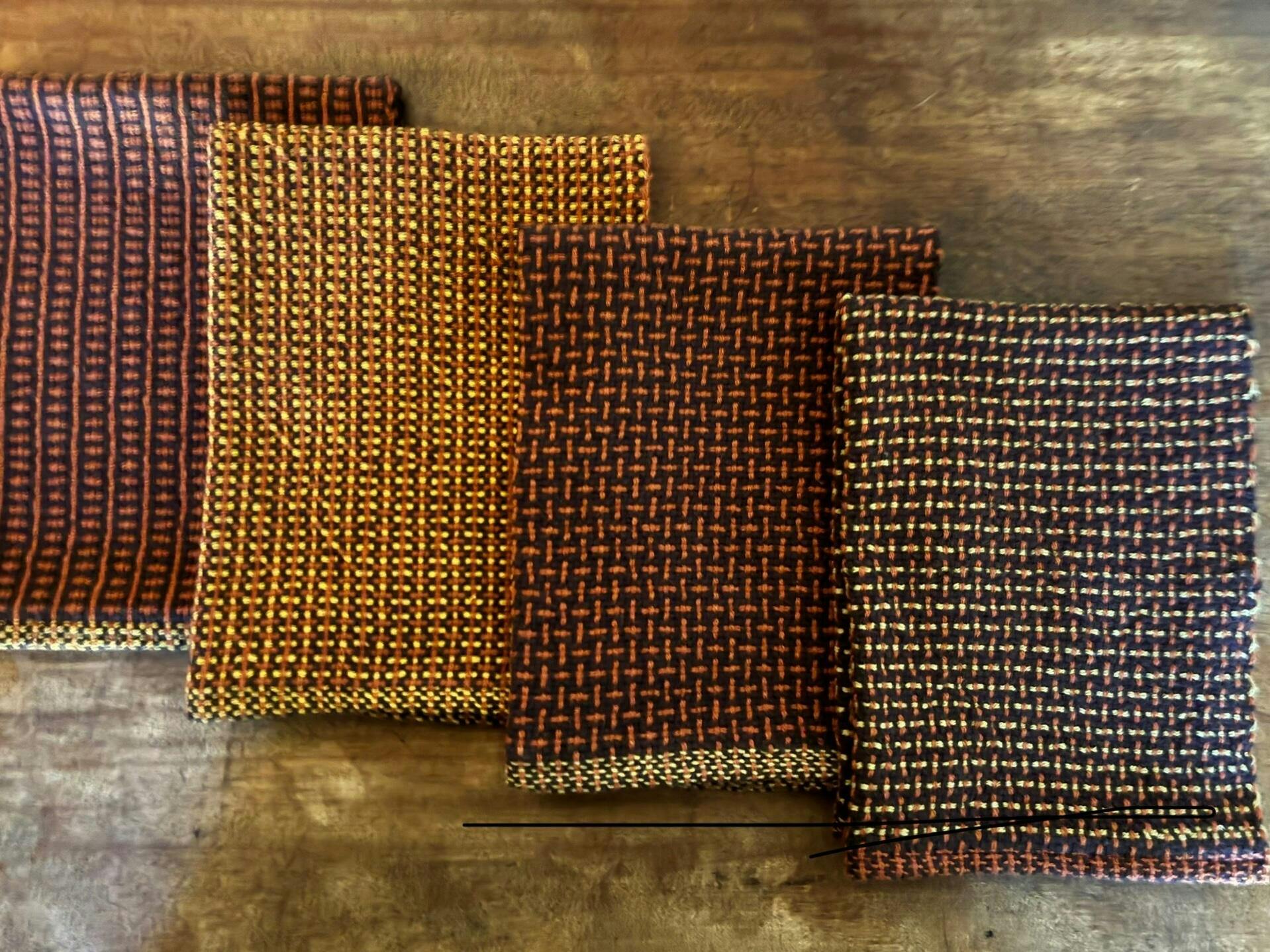 You will start with a striped warp and then take off from there by weaving four different towels on one warp. There are so many color possibilities!