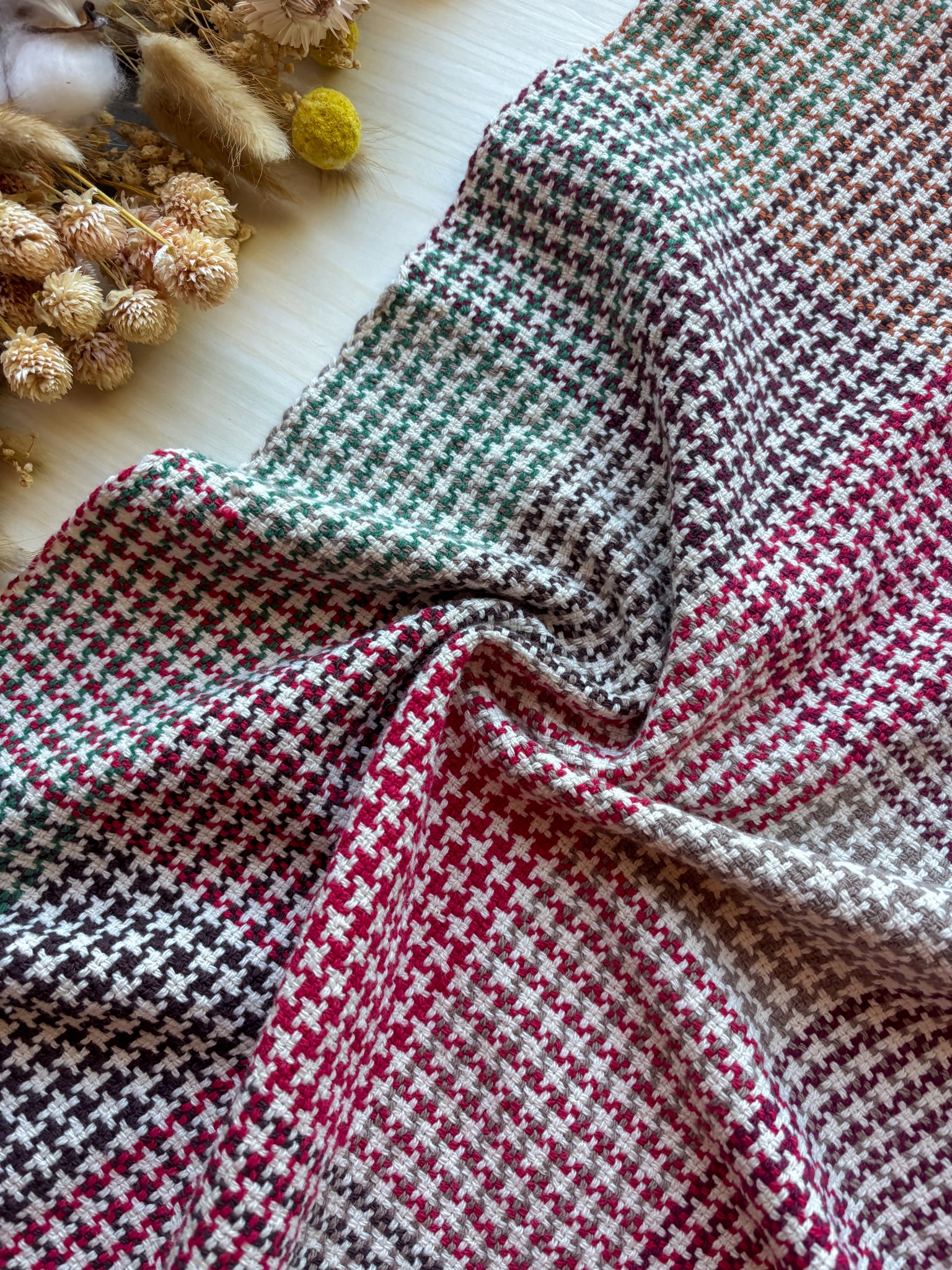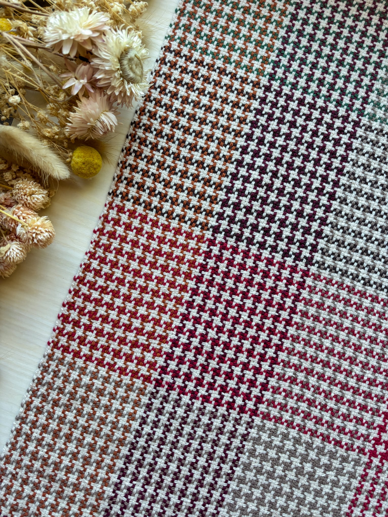 Our Artisan Towels showcase the classic charm of houndstooth in a color gamp design, woven with natural and six colors of our Aurora Earth 100% cotton yarn. The result is a project full of contrast, softness, and lasting character — perfect for cozy days in the kitchen or holiday gatherings around the table.