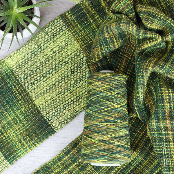 With its playful twist and shifting colors, this variegated beauty brings texture, depth, and a burst of excitement to your weaving, knitting, or crochet. Pair it with our Aurora Earth 8/2 Cotton, Cotton Tail 8/4 or Organic 5/3 cottons to let the colors dance or let it shine all on its own.