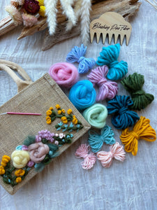 This Floral Tote Bag Kit provides you with the yarns, fibers, needle, tote bag AND the video class to follow along and learn from.
