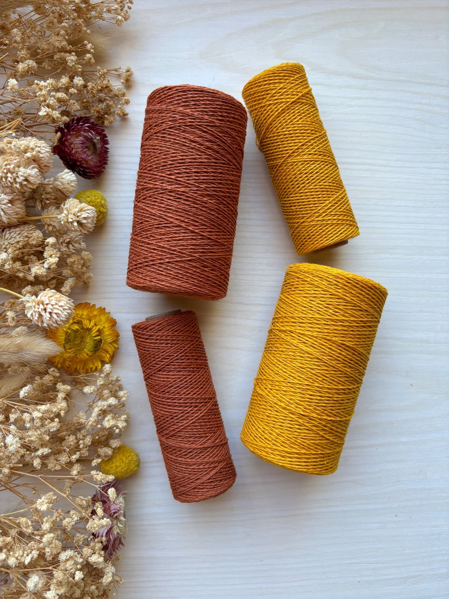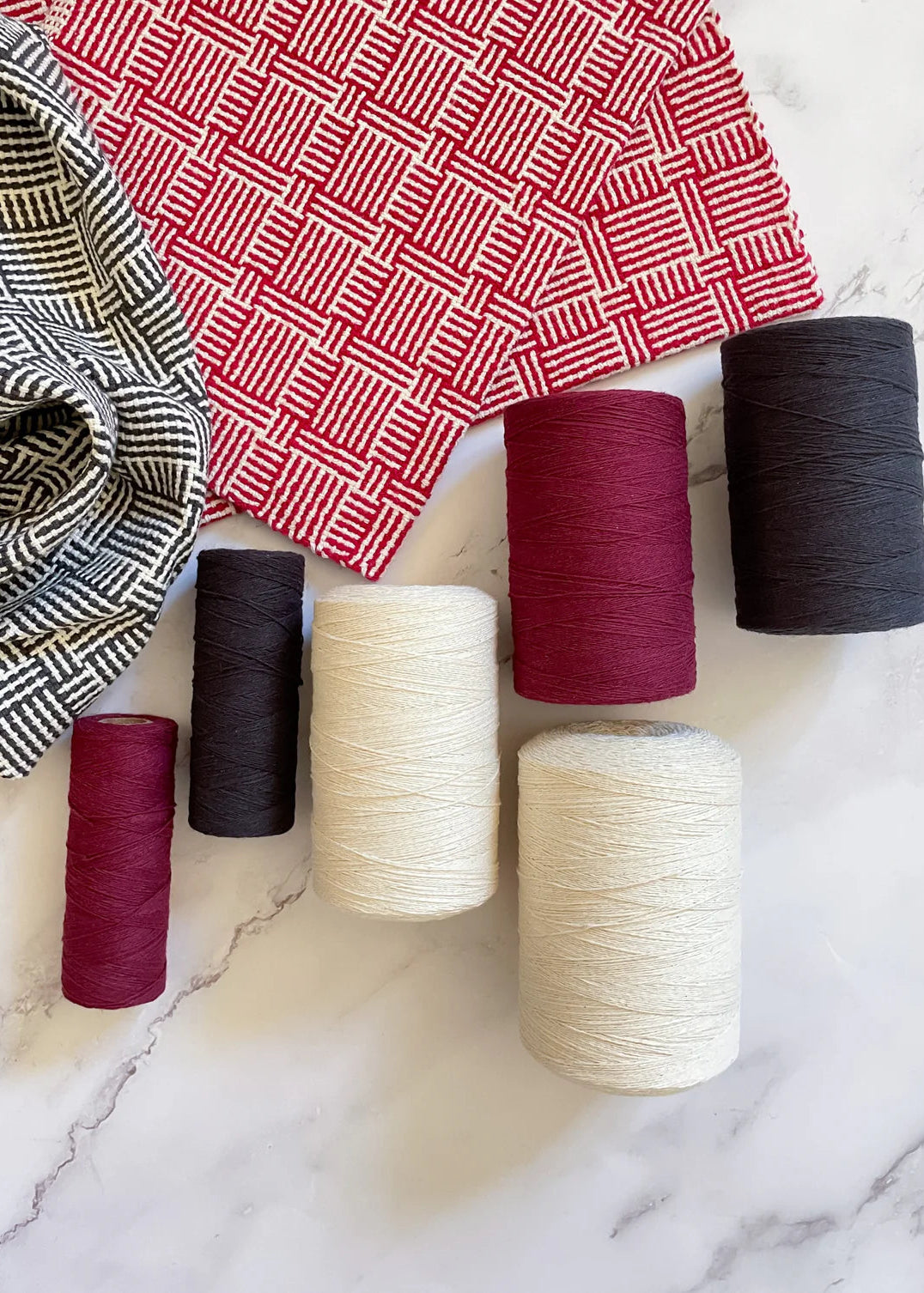 Warp and Weft Yarns: Aurora Earth 8/2 Cottons in two contrasting colors