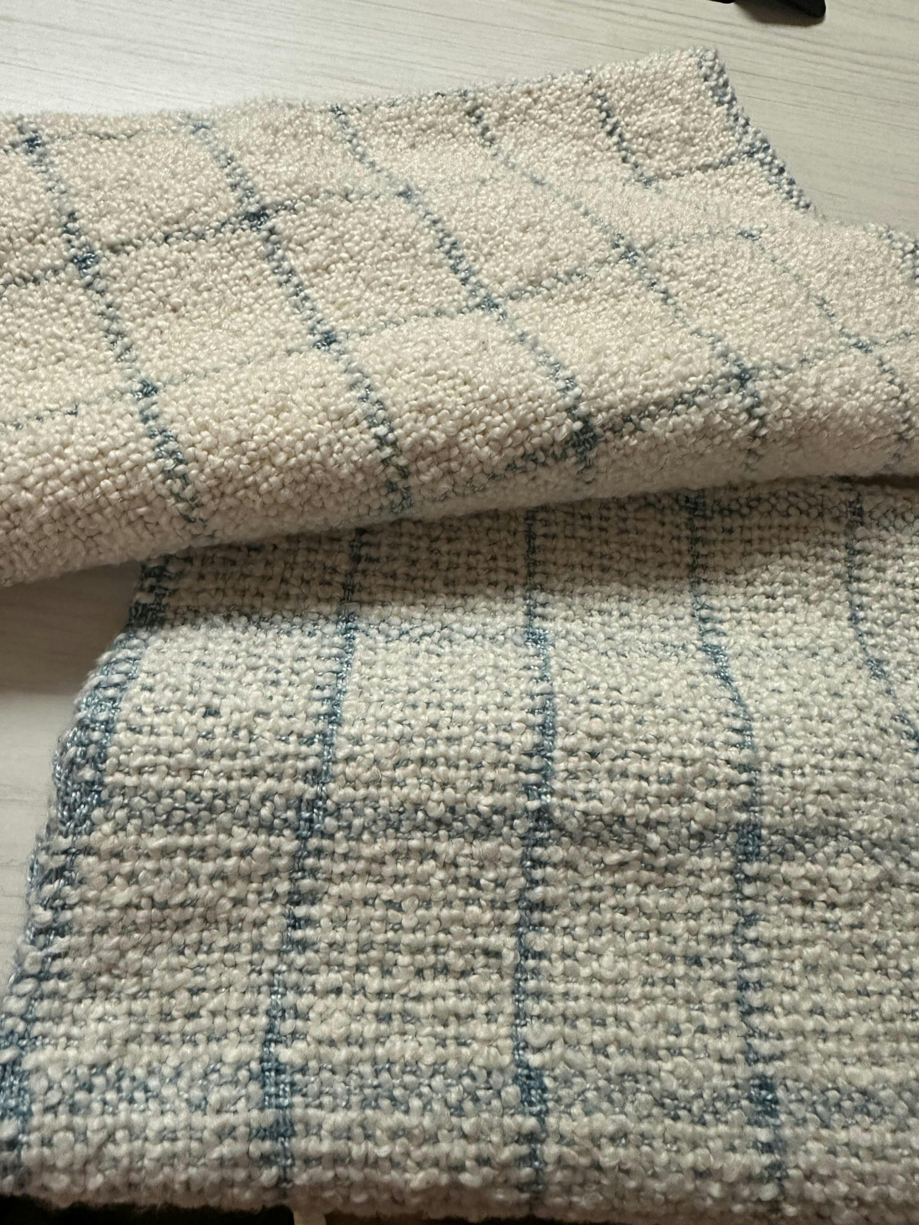 The boucle type construction of this yarn makes it lightweight, lofty and very soft. It knits and weaves up beautifully.