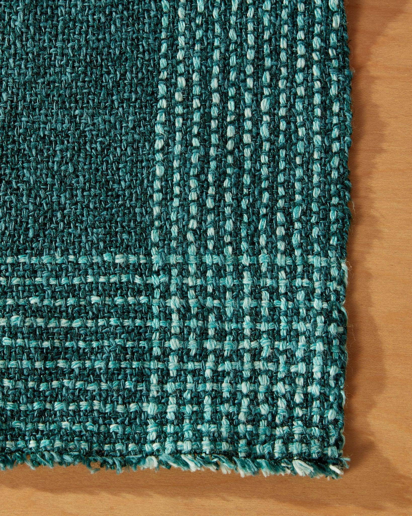 The design features subtle textural shifts created by crammed threading and doubled pick areas, adding dimension to an otherwise simple plain weave structure. With two contrasting colors of Duet Cotton/Linen, the resulting cloth is graphic, vibrant, and perfect for everyday meals or special gatherings.