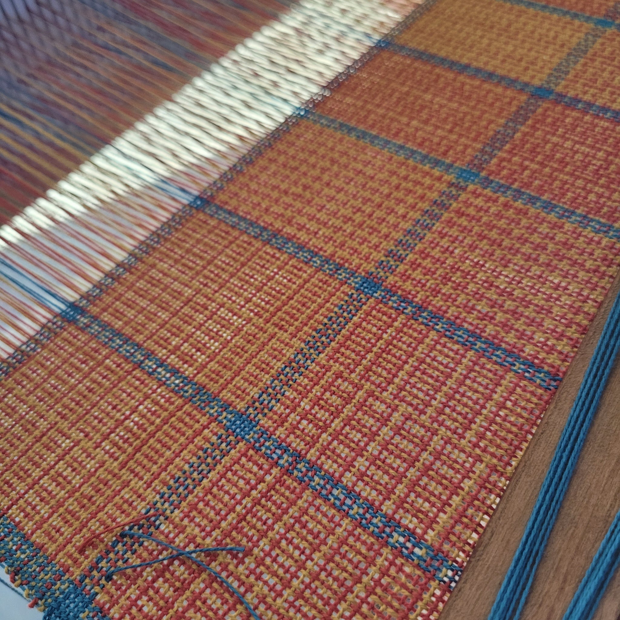 Woven with two heddles to achieve the proper sett, this project guides you through three timeless colour-and-weave effects—Log Cabin, Houndstooth, and a custom block design—all in one warp. You’ll work step-by-step through double-heddle threading, tensioning, and weaving at 20 ends per inch, gaining confidence as the patterns grow beneath your hands.